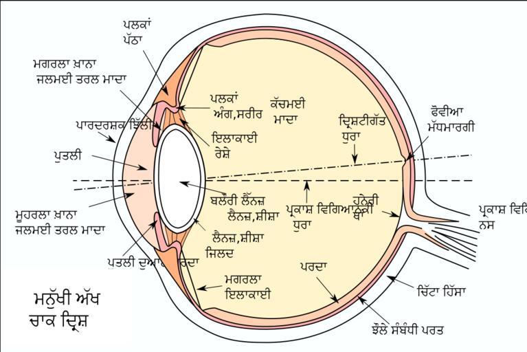 | Keywords: Eyesection pa.svg pa ਮਨੁੱਖ ਅੱਖ ਚਾਕ ਦ੍ਰਿਸ਼ These are the parts of the human eye 2012-09-04 12 27 33 Self-work based on Eyesection gif Based on Eyesection gif by en User_talk Sathiyam2k Vectorization and some modifications by user ZStardust other fields + 3 SVG files on human eye Uploaded with UploadWizard |