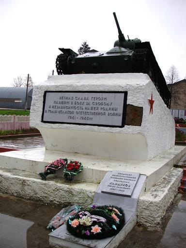 Keywords: Ezerische, Great Patriotic War memorial.jpg en Ф агмент мемо иала погибшим в годы Великой Отечественной войны Вид на танк Т-70 и могилу полковника Хайдукова команди а 159-й танковой б игады погибшего п и освобождении посёлка en Memorial to the fallen in Great Patriotic War during the liberation of the village View of the T-70 Hajdukov's grave commander-in-chief of the 159th tank brigade who was killed during the liberation of of the Ezerische 2011-10-08 own Vasyatka1 T-70 in Yezyaryshcha