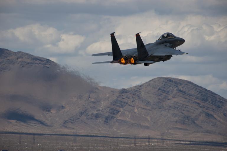 Keywords: F-15E Strike Eagle Fighter Squadron takes off Red Flag 15-3 Nellis Air Force Base