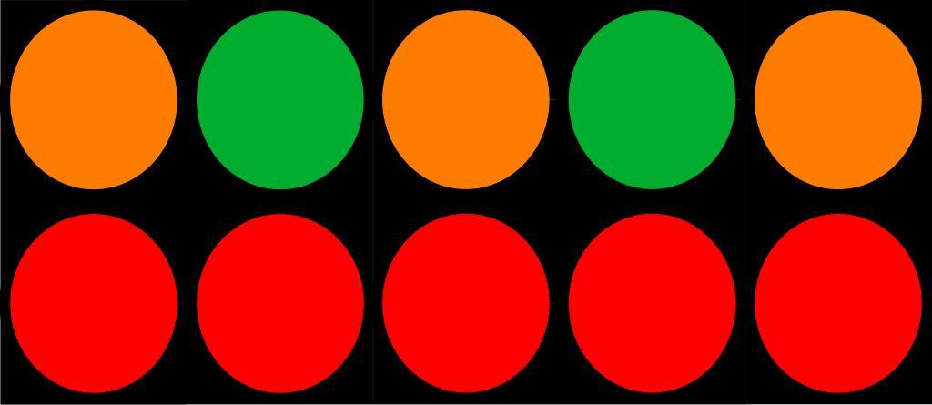 Keywords: F1StartLights.svg Formula One Start Lights as seen by television viewers Different to what drivers see Own 2006-08-25 Alex Jones All Rights Released en Five minutes before the formation lap begins all five red lights will illuminate After one minute a light will extinguish After another minute a second light will extinguish This continues until all lights are extinguished and the two green lights will illuminate and the formation lap commences After the formation lap the red lights will light up one at a time before a short pause and then all of them going out indicating the start of the race In the event of an aborted start all five red lights will light up and the three orange lights will flash Then both red and orange lights are extinguished and the green lights illuminate to indicate another formation lap whilst the problem is dealt with User Alexj2002/InkscapePD Motorsport lights |
