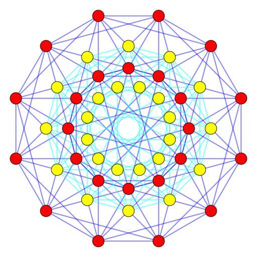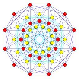 | Keywords: F4 roots by 24-cell duals.svg en Two en 24-cells in F4 en Coxeter plane in dual configurations second as a trirectification of the first so nodes located in the center of the octahedral cell facets of the first These 48 vertices represent the root vectors of en F4 mathematics own Tomruen 12/14/10 File 24-cell_duals svg 24-cell Lie groups |
