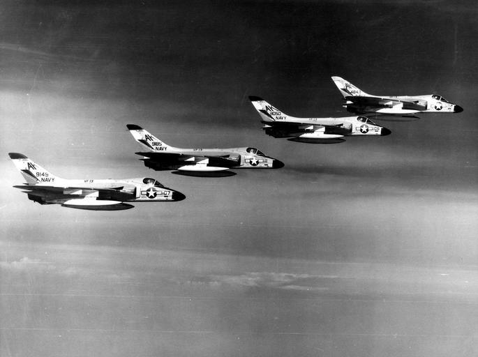 | Keywords: F4D-1 Skyrays VF-13 in flight 1962.jpg Four U S Navy Douglas F4D-1 Skyray from Fighter Squadron VF-13 Night Cappers in flight near Cannes France VF-13 was assigned to Carrier Air Group 10 CVG-10 aboard the aircraft carrier USS Shangri-La CVA-38 for a deployment to the Mediterranean Sea from 7 February to 28 August 1962 U S Navy photo http //navysite de/cruisebooks/cv38-62/139 htm from the http //navysite de/cruisebooks/cv38-62/index_003 htm USS Shangri-La CVA-38 1962 cruise book available at http //navysite de/cruisebooks/index html Navysite de; http //collections naval aviation museum/emuwebdoncoms/pages/doncoms/AdvQuery php U S Navy National Museum of Naval Aviation photo No http //collections naval aviation museum/emuwebdoncoms/pages/doncoms/Display php irn 35162 QueryPage 2Femuwebdoncoms 2Fpages 2Fdoncoms 2FAdvQuery php 1996 253 7325 015 1962 USN PD-USGov-Military-Navy Douglas F4D Skyray Fighter Squadron 13 United States Navy US Navy in Cannes Historical images of Cannes |