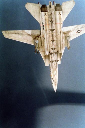 | Keywords: F-14A VF-41 Operation Desert Storm CAP.JPEG en An underside view of a Fighter Squadron 41 VF-41 F-14A Tomcat aircraft on a combat air patrol CAP during Operation Desert Storm The aircraft is carrying four AIM-7 Sparrow missiles under its fuselage and two AIM-9 Sidewinder missiles on each wing pylon 1991-02-19 www DefenseImagery mil US Navy PD-USGov Uploaded with UploadWizard F-14A Tomcat in flight Aerial photographs of F-14 Tomcat in flight Fighter Squadron 41 United States Navy AIM-7 Sparrow AIM-9 Sidewinder Gulf War 1990-1991 |