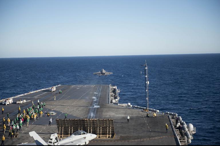 | Keywords: F-35C Lightning II conducts 1st carrier launch 141104-N-MD297-076.jpg  en An F-35C Lightning II carrier variant joint strike fighter successfully completes the first carrier launch from the flight deck of the aircraft carrier USS Nimitz CVN 68 The F-35 Lightning II Pax River Integrated Test Force from Air Test and Evaluation Squadron VX 23 is conducting initial at-sea trials aboard Nimitz U S Navy photo by Mass Communication Specialist 3rd Class Huey D Younger Jr /Released 2014-11-04 Petty Officer 3rd Class Huey Younger https //www dvidshub net/image/1645260 141104-N-MD297-076 2014-11-05 21 05 USS NIMITZ AT SEA PD-USGov-Military-Navy F-35C Lightning II aircraft carrier launches USS Nimitz CVN-68 Images from DoD uploaded by Fæ |