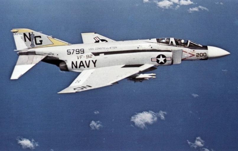 | Keywords: F-4J Phantom VF-92 in flight c1972.jpg A U S Navy McDonnell F-4J-35-MC Phantom II BuNo 155799 from Fighter Squadron VF-92 Silver Kings in flight VF-92 was assigned to Carrier Air Wing 9 CVW-9 aboard the aircraft carrier USS Constellation CVA-64 for a deployment to Vietnam from 1 October 1971 to 1 July 1972 Official U S Navy photograph http //navysite de/cruisebooks/cv64-71/114 htm from the USS Constellation CVA-64 http //navysite de/cruisebooks/cv64-71/index_017 htm 1971-72 Cruise Book ca 1972 USN PD-USGov-Military-Navy F-4J Phantom II Aerial photographs of F-4 Phantom II in flight Fighter Squadron 92 United States Navy |