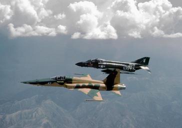 Keywords: F-5E NFWS in flight with F-4J VX-4 1985.JPEG A U S Navy Northrop F-5E Tiger II from the Fighter Weapons School Top Gun flies in formation with a McDonnell Douglas F-4S Phantom II BuNo 155539 from test and evaluation squadron VX-4 Evaluators on 1 July 1985 U S DefenseImagery http //www defenseimagery mil photo VIRIN DN-SC-90-11793 http //www dodmedia osd mil/DVIC_View/Still_Details cfm SDAN DNSC9011793 JPGPath /Assets/1986/Navy/DN-SC-90-11793 JPG; Transferred from http //en wikipedia org en wikipedia 1985-07-01 LCdr David Baranak USN; Original uploader was Wikiphyte at http //en wikipedia org en wikipedia 2007 06 27 original upload date PD-USGov-Military-Navy original upload log page en wikipedia VX_4_Evaluators_1 jpg 2007-06-27 09 17 Wikiphyte 3000×2111× 1044017 bytes <nowiki> An air-to-air view of a VX-4 Evaluators Phantom II aircraft </nowiki> F-5 Tiger II F-4S Phantom II United States Navy Fighter Weapons School Aircraft camouflage Air Test and Evaluation Squadron 4 United States Navy Aerial photographs of military aircraft in flight Aerial photographs of F-4 Phantom II in flight |
