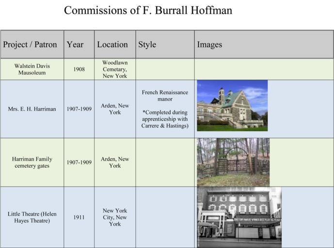 Keywords: F Burrall Hoffman COMISSIONS1.png en The work of F burral Hoffman Jr own Peparimany 2009-12-10 cc-zero Tables information Diagrams in English Architects from the United States