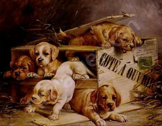 | Keywords: F. Olaria. Straight from the crate.jpg en óleo sobre lienzo Tragallibres Federico Olaria Torres 1892 Sotheby´s / Sale NY7455 14 Apr 00 - 15 Apr 00 / LOT 83 Federico Olaria Spanish 1849-98 STRAIGHT FROM THE CRATE signed F Olaria inscribed and dated Paris 1892 center right oil on canvas 21a by 25ain 54 by 64 8cm 6 000 ”8 000 USD Lot Sold Hammer Price with Buyer's Premium 21 450 USD PD-old 19th-century paintings Olaria Federico Romantic paintings in Spain Federico Olaria 19th-century paintings of dogs |