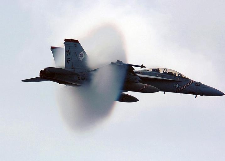 Keywords: FA-18 Super Hornet VFA-102.jpg Somewhere over the Philippine Sea a US Navy USN F/A-18F Super Hornet Strike Fighter Squadron 102 VFA-102 Diamondbacks Naval Air Station NAS Atsugi Japan JPN breaks the sound barrier during a fly-by over the aircraft carrier USS KITTY HAWK CV 63 not shown Shot 27 Jul 2005 PD-USN Strike Fighter Squadron 102 United States Navy F/A-18F Super Hornet with condensation clouds from shockwaves |