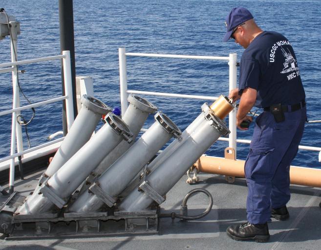 MAKE A MEME View Large Image FA PANAMAX 2009 action DVIDS205771.jpg en U S Coast Guard Petty Officer 3rd Class Antonio Seisdedos gunner's mate aboard the USCGC Mohawk check the Mark 36 Super Rapid Bloom Off-board Chaff for correct voltage before firing The Mark 36 ...