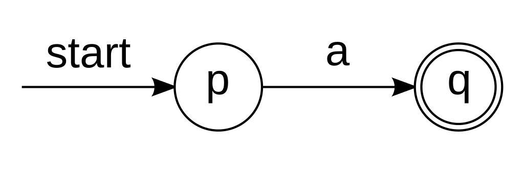 | Keywords: FA regexp accept singlesymbol.svg en Finite automaton that accept a single symbol a from an alphabet pl Automat skończony akceptujący pojedynczy symbol a należący do alfabetu own Wojciech Muła 11 10 2008 Automata theory Deterministic finite state automata |
