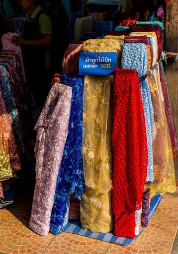 Keywords: fabric towels colorful warorot market chiang mai north thailand