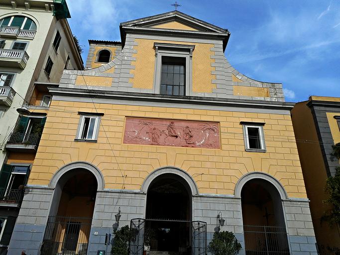 | Keywords: church naples italy architecture building facade outdoor Pur essendo stata fondata nel Seicento, la chiesa di San Giuseppe a Chiaia (alla Riviera di Chiaia, a Napoli) ha una facciata realizzata dopo il 1830 in un elegante ed essenziale stile neoclassico, che nel porticato e nel lungo bassorilievo con la "Fuga in Egitto" ricorda quella del San Carlo. Da notare, come rievocazione archeologica, l' "opus reticulatum" ottenuto in stucco nell'ordine superiore. Ne ignoro l'architetto (Antonio Niccolini?). Pur essendo stata fondata nel Seicento, la chiesa di San Giuseppe a Chiaia (alla Riviera di Chiaia, a Napoli) ha una facciata realizzata dopo il 1830 in un elegante ed essenziale stile neoclassico, che nel porticato e nel lungo bassorilievo con la "Fuga in Egitto" ricorda quella del San Carlo. Da notare, come rievocazione archeologica, l' "opus reticulatum" ottenuto in stucco nell'ordine superiore. Ne ignoro l'architetto (Antonio Niccolini?). |