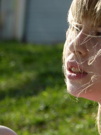 Keywords: face girl child windswept hair wind hair blond lips mouth