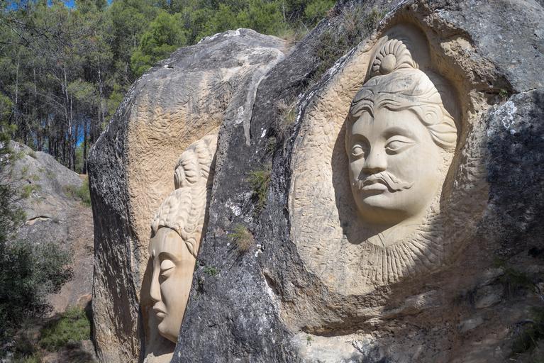 Keywords: faces sculpture stone buddha face carving portrait women museum lips drawing mount pine sky nose mouth