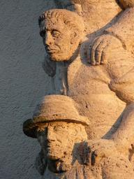 Keywords: faces stone stonemasonry profile men figures facade head heads shadow back light person face portrait piggyback each other one above the other