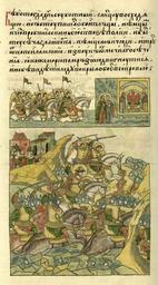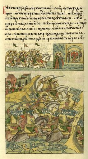 Keywords: Facial Chronicle - b.06, p.086 - Battle of the Ice.jpg Schlacht auf dem Peipussee unmittelbar vor der Schlacht en Alexander Nevskiy ice battle ru Ледовое побоище Был же тогда день субботний солнце всходило; и сошлись оба войска емцы же и чудь выст оившись клином п обились сквозь войска новго одские; и был там бой жестокий и большой с немцами и чудью; и воздух сот ясался от ломающихся копий и стоял звон от бьющихся мечей; и озе о заме зшее д огнуло; и не было видно льда ибо залито было все к овью http //www akteon-elib ru/LITsIeVOI-LIeTOPISNYI-SVOD-Russkaya-letopisnaya-istoriya-Kniga-6/ 20 unbekannt unknown неизвестен 16 Jh 16th centry 16 века PD-Art Alexander Nevsky in miniature Facial Chronicle v 5 - Laptevskiy tom 1116-1252 Files uploaded by Shakko from various sources Battle of the Ice Icons of Holy Wisdom |