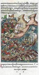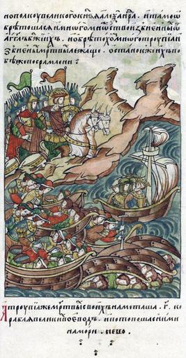 Keywords: Facial Chronicle - b.06, p.037 - Battle of Neva.jpg войску великого князя Александ а; и там оказалось многое множество убитых ангелами Божьими и обна ужили наши что там лежало много тел ме твых убитых неп иятелей Оставшиеся же в живых бежали с позо ом; А т упов же ме твых своих наб осали 3 ко абля больших воевод и потопли с ними в озе е Ладожском http //nnm ru/blogs/paradoksik/aleksandr_nevskiy/ 16 век anonymous Files uploaded by Shakko from various sources Battle of the Neva Alexander Nevsky in miniature Facial Chronicle v 5 - Laptevskiy tom 1116-1252 PD-Art