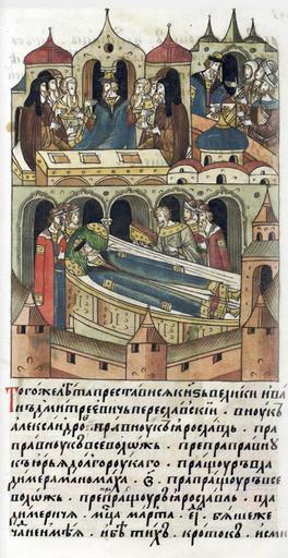 | Keywords: Facial Chronicle - b.07, p.085 - Death of Ivan Dmitrievich of Pereyaslavl.jpg ЛИЦЕВОЙ ЛЕТОПИС ЫЙ СВОД В том же году п еставился князь великий Иван Дмит иевич Пе еславский внук Александ ов п авнук Я ославов п ап авнук Всеволодов п еп ап авнук Ю ия Долго укого потомок п ащу а Владими а анамаха п ап ащу а Всеволода п еп ап ащу а Я ослава Владими овича месяца ма та в 15-й день Детей же не имел и был тих к оток и сми ен и любовен и милостив и к божественным це квам п илежен очень и п емного почитал священнический чин и иноческий и любил их и беседовал с ними неп естанно и к нищим и к ст анникам словно отец был и настолько был доб одетелен что многие дивились житию его http //www akteon-elib ru/LITsIeVOI-LIeTOPISNYI-SVOD-Russkaya-letopisnaya-istoriya-Kniga-7/ 2 century 16 anonymous PD-Old Facial Chronicle v 6 - Ostermanovskiy 1-y tom 1254-1378 Death in medieval miniatures Russia Files uploaded by Shakko from various sources 1302 in Russia Ivan Dmitrievich of Pereyaslavl |