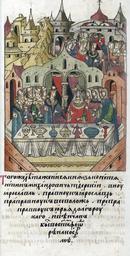 Keywords: Facial Chronicle - b.07, p.217 - Wedding of Konstantin Mikhailovich of Tver.jpg ЛИЦЕВОЙ ЛЕТОПИС ЫЙ СВОД В том же году женился князь Константин ихайлович Тве ской внук Я ославов п авнук Я ославов п ап авнук Всеволодов п еп ап авнук Ю ия Долго укого и венчан был в це кви святого Феодо а в Кост оме http //www akteon-elib ru/LITsIeVOI-LIeTOPISNYI-SVOD-Russkaya-letopisnaya-istoriya-Kniga-7/ 2 century 16 anonymous PD-Old Facial Chronicle v 6 - Ostermanovskiy 1-y tom 1254-1378 Files uploaded by Shakko from various sources 1320 in Russia Konstantin Mikhailovich of Tver Sophia Yuryevna of Moscow Weddings in medieval manuscripts Russia |