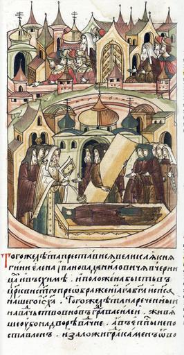 Keywords: Facial Chronicle - b.07, p.373 - Death of Elena of Moscow.jpg ЛИЦЕВОЙ ЛЕТОПИС ЫЙ СВОД В том году п еставилась великая княгиня Елена Ивана Даниловича че ница в схиме и положена была в це кви святого П еоб ажения Господа Бога и Спаса нашего Исуса Х иста http //www akteon-elib ru/LITsIeVOI-LIeTOPISNYI-SVOD-Russkaya-letopisnaya-istoriya-Kniga-7/ 2 century 16 anonymous PD-Old Facial Chronicle v 6 - Ostermanovskiy 1-y tom 1254-1378 Death in medieval miniatures Russia Files uploaded by Shakko from various sources 1331 in Russia Grand Duchesses of Moscow Ivan Kalita in miniature |