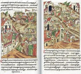 | Keywords: Facial Chronicle - b.08, p.420-421 - Algierd at Moscow.jpg ru Отступление Ольге да от осквы иниатю а Лицевого свода XVI в Отступление Ольге да от осквы в 1370 году иниатю а Лицевого свода XVI в ЛИЦЕВОЙ ЛЕТОПИС ЫЙ СВОД Ольге д много завоевал сжег убил и захватил в плен и ешил идти об атно но узнав что соб алось большое войско и готовится к битве испугался и начал п осить ми а Князь великий Дмит ий Иванович заключил с ним ми до Пет ова дня но Ольге д хотел заключить ми навеки и ешил отдать за князя Владими а Анд еевича свою дочь что и п оизошло И заключив ми отошел князь от осквы п обыв под осквою восемь дней и ве нулся в свое княжество идя осто ожно ози аясь по сто онам опасаясь за собой погони Князь ихаил Александ ович ве нулся в Тве ь заключив ми с великим князем Дмит ием Ивановичем http //www akteon-elib ru/LITsIeVOI-LIeTOPISNYI-SVOD-Russkaya-letopisnaya-istoriya-Kniga-8/ 424 anonymous century 16 PD-old thumb 100px left full color page thumb 100px left cropped PNG 897 KB PD-old-100 Algirdas 1 History of Moscow Facial Chronicle v 6 - Ostermanovskiy 1-y tom 1254-1378 1370 in Russia Dmitry Donskoy in manuscripts |