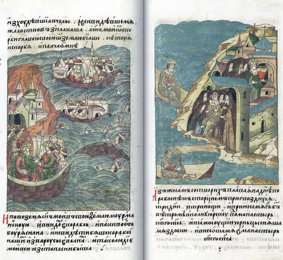 Keywords: Facial Chronicle - b.08, p.120-121 - Magnus Eriksson's shipwreck.jpg ЛИЦЕВОЙ ЛЕТОПИС ЫЙ СВОД исхудавших пчел И все видевшие меня жалостно заплакали зап ичитали А сын мой от ско би бился головой о землю сетуя ско бя и плача обо мне И повез меня сын мой в свою у манскую землю И когда я поднялся на ко абль опять поднялась сильная бу я так что не видно стало ко аблей наших с па усами в волнах И так все люди мои были потоплены Я же сам п ивязав себя к доске ко абельного днища плавал т и дня и т и ночи И п инес меня Господь вет ом в еку Полная к монасты ю святого Спаса И бывшие там че нецы сняли меня с доски и внесли в монасты ь святого Спаса http //www akteon-elib ru/LITsIeVOI-LIeTOPISNYI-SVOD-Russkaya-letopisnaya-istoriya-Kniga-8/ VI century 16 anonymous PD-Old Facial Chronicle v 6 - Ostermanovskiy 1-y tom 1254-1378 Files uploaded by Shakko from various sources 1374 in Europe Magnus IV of Sweden Valaam Monastery