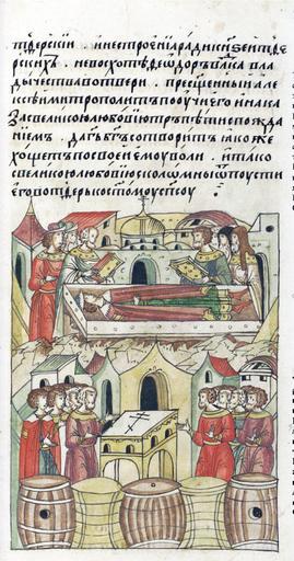 | Keywords: Facial Chronicle - b.08, p.193 - Death of Ivan Andreevich of Serpukhov.jpg ЛИЦЕВОЙ ЛЕТОПИС ЫЙ СВОД В том же году п еставился князь Иван Анд еевич В том же году новго одцы догово ились между собой и к ест целовали что не будут те петь иг ищ бесовских и бить бочек http //www akteon-elib ru/LITsIeVOI-LIeTOPISNYI-SVOD-Russkaya-letopisnaya-istoriya-Kniga-8/ VI century 16 anonymous PD-Old Facial Chronicle v 6 - Ostermanovskiy 1-y tom 1254-1378 Death in medieval miniatures Russia Files uploaded by Shakko from various sources 1358 in Russia Princes of Serpukhov |