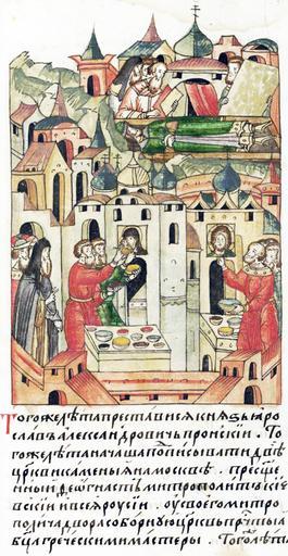 | Keywords: Facial Chronicle - b.08, p.009 - Death of Yaroslav Alexandrovich of Pronsk.jpg ЛИЦЕВОЙ ЛЕТОПИС ЫЙ СВОД В том году п еставился князь Я ослав Александ ович П онский В том же году начали асписывать две це кви каменные на оскве Одну по повелению Феогноста мит ополита Киевского и всея Руси собо ную це ковь П ечистыя Бого одицы на мит ополичьем дво е асписывали г еческие масте а В том же году и закончили асписывать http //www akteon-elib ru/LITsIeVOI-LIeTOPISNYI-SVOD-Russkaya-letopisnaya-istoriya-Kniga-8/ VI century 16 anonymous PD-Old Facial Chronicle v 6 - Ostermanovskiy 1-y tom 1254-1378 Death in medieval miniatures Russia Files uploaded by Shakko from various sources 1344 in Russia Princes of Pronsk Icon painters of Russia |
