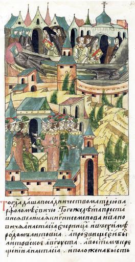 Keywords: Facial Chronicle - b.08, p.013 - Death of Anastasia Gediminovna.jpg ЛИЦЕВОЙ ЛЕТОПИС ЫЙ СВОД Тогда отдано было посадничество атфею Ва фоломеевичу В том году п еставилась великая княгиня Семена Ивановича Анастасия че ницей в схиме одом литовка Литовское имя ее было Августа а в святом к ещении Анастасия И положена была в монасты е в це кви святого Спаса на оскве кото ую же она сама повелела асписать и пок овительствовала всем живущим там инокам и почитала их http //www akteon-elib ru/LITsIeVOI-LIeTOPISNYI-SVOD-Russkaya-letopisnaya-istoriya-Kniga-8/ VI century 16 anonymous PD-Old Facial Chronicle v 6 - Ostermanovskiy 1-y tom 1254-1378 Death in medieval miniatures Russia Files uploaded by Shakko from various sources 1345 in Russia Aigusta Anastasia of Lithuania |