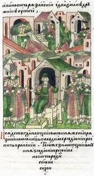 | Keywords: Facial Chronicle - b.08, p.453 - Birth of Vasily I of Moscow.jpg ЛИЦЕВОЙ ЛЕТОПИС ЫЙ СВОД И сел тогда на великом княжении Рязанском князь Владими Дмит иевич П онский В ту же зиму у великого князя Дмит ия Ивановича одился сын Василий http //www akteon-elib ru/LITsIeVOI-LIeTOPISNYI-SVOD-Russkaya-letopisnaya-istoriya-Kniga-8/ VI century 16 anonymous PD-Old Facial Chronicle v 6 - Ostermanovskiy 1-y tom 1254-1378 Files uploaded by Shakko from various sources 1371 in Russia Vasily I of Moscow in miniature Princes of Pronsk |