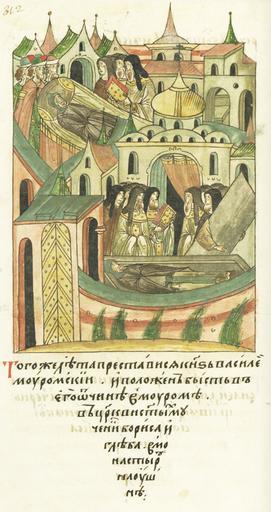 | Keywords: Facial Chronicle - b.08, p.020 - Death of Vasily Yaroslavich of Murom.jpg ЛИЦЕВОЙ ЛЕТОПИС ЫЙ СВОД В том году п еставился князь Василий у омский и положен был в его вотчине в у оме в це кви святых мучеников Бо иса и Глеба в монасты е на Ушне http //www akteon-elib ru/LITsIeVOI-LIeTOPISNYI-SVOD-Russkaya-letopisnaya-istoriya-Kniga-8/ VI century 16 anonymous PD-Old Facial Chronicle v 6 - Ostermanovskiy 1-y tom 1254-1378 Death in medieval miniatures Russia Files uploaded by Shakko from various sources 1345 in Russia Princes of Murom |