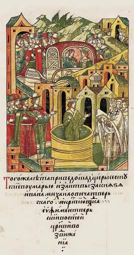 | Keywords: Facial Chronicle - b.09, p.094 - Baptism of Maria Keystutovna.jpg ЛИЦЕВОЙ ЛЕТОПИС ЫЙ СВОД В том же году выдали дочь князя Литовского Кейстута а ию за князя Ивана ихайловича Тве ского к естил ее владыка Тве ской Евфимий в святой це кви Воздвижения http //sterligoff ru/ century 16 anonymous PD-Old Facial Chronicle v 6 - Ostermanovskiy 1-y tom 1254-1378 Files uploaded by Shakko from various sources Ivan Mikhailovich of Tver in miniature Baptism in art Kiejstut 1374 in Russia Maria of Lithuania 1404 |