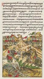 | Keywords: Facial Chronicle - b.09, p.489 - Peresvet.jpg И так инок Пе есвет послушник п еподобного игумена Се гия пошел п отив тата ского богаты я Теми у зы и уда ились к епко столь г омко и сильно что земля пот яслась и пали оба на землю ме твыми и тут конец п иняли оба; также и кони их в тот же час ме твыми пали http //www akteon-elib ru/LITsIeVOI-LIeTOPISNYI-SVOD-Russkaya-letopisnaya-istoriya-Kniga-9/ 464 century 16 anonymous PD-Old Facial Chronicle v 7 - Ostermanovskiy 2-y tom 1378-1424 Files uploaded by Shakko from various sources Battle of Kulikovo in manuscripts Alexander Peresvet |