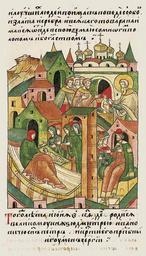 | Keywords: Facial Chronicle - b.10, p.148 - Birth of Petr Dmitrievich of Dmitrov.jpg ЛИЦЕВОЙ ЛЕТОПИС ЫЙ СВОД Тем же летом месяца июня в 29-й день одился у великого князя Дмит ия Ивановича сын Пет и к естил его п еподобный игумен Се гий http //www akteon-elib ru/LITsIeVOI-LIeTOPISNYI-SVOD-Russkaya-letopisnaya-istoriya-Kniga-10/ 14 century 16 anonymous PD-Old Facial Chronicle v 7 - Ostermanovskiy 2-y tom 1378-1424 Files uploaded by Shakko from various sources 1385 in Russia Petr Dmitrievich of Dmitrov Eudoxia of Moscow in miniature Sergius of Radonezh in manuscripts |