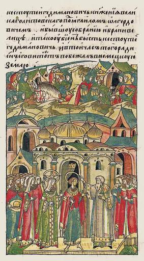 Keywords: Facial Chronicle - b.10, p.463 - Wedding of Vasily I and Sofia Vitovtovna.jpg ЛИЦЕВОЙ ЛЕТОПИС ЫЙ СВОД И великий князь Василий Дмит иевич взял ее в жены после К ещения месяца янва я в 9 день в день памяти святого мученика Полиекта Витовт тогда был в немецкой земле Он бежал из Литвы после того как был убит отец его Кестутий Отец его Кестутий Гедиминович задумал отнять великое княжение Литовское у Ягайло Ольге довича Была великая битва и убит был Кестутий Гедиминович и сын его Витовт в тот же час бежал в немецкую землю http //www akteon-elib ru/LITsIeVOI-LIeTOPISNYI-SVOD-Russkaya-letopisnaya-istoriya-Kniga-10/ 256 century 16 anonymous PD-Old Facial Chronicle v 7 - Ostermanovskiy 2-y tom 1378-1424 Files uploaded by Shakko from various sources 1391 in Russia Sofia Vitovtovna Weddings in medieval manuscripts Russia Vasily I of Moscow in miniature