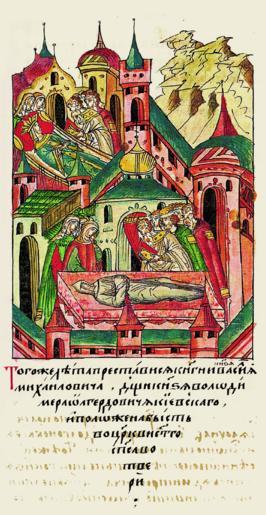 Keywords: Facial Chronicle - b.11, p.349 - Death of Vladimir Olgerdovich's daughter.gif В том же году п еставилась княгиня князя Василия ихайловича дочь князя Владими а Ольге довича Киев- ского и положена была в це кви святого Спаса в Тве и ____ Анастасия - муж Василий 1364 1426 князь кашинский и кснятинский с 1395 http //www runivers ru/bookreader/book480116/ page/242/mode/1up century 16 anonymous PD-Old Files uploaded by Shakko from various sources Facial Chronicle v 7 - Ostermanovskiy 2-y tom 1378-1424 Death in medieval miniatures Russia Vasiliy Mikhailovich of Kashin 1364-1426 1396 in Russia |