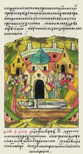 | Keywords: Facial Chronicle - b.13, p. 231 - Death of Elena Olgerdovna.gif В 6946 году месяца сентяб я в 15 день п еставилась княгиня Евп аксия и похо- онил ее с псалмами и надг обными пес- нопениями со всем освященным собо ом Исидо мит ополит Киевский и всея Руси http //www runivers ru/bookreader/book480451/ page/25/mode/1up century 16 anonymous PD-Old Facial Chronicle v 4 - Golytsinskiy tom 1114-1247; 1425-1472 Death in medieval miniatures Russia Files uploaded by Shakko from various sources 1437 in Russia Helen of Lithuania Isidore of Kiev |