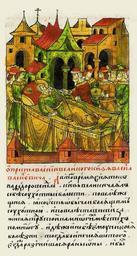 Keywords: Facial Chronicle - b.15, p. 025 - Death of Vasily II.gif О кончине великого князя Василия Васи- льевича А в то же в емя в пятницу на Федо овой неделе великий князь почувствовал на себе сухотную болезнь И он повелел жечь себя потому что есть такой обычай для за- болевших сухоткой повелел ставить за- жигая т ут на азных местах помногу и где и не было ему болез- ни тогда не чуял его Когда же загноились аны и стала болезнь его тяжка он захотел в че нецы пост ичься но не дали ему http //www runivers ru/bookreader/book480451/ page/25/mode/1up century 16 anonymous PD-Old Facial Chronicle v 4 - Golytsinskiy tom 1114-1247; 1425-1472 Death in medieval miniatures Russia Files uploaded by Shakko from various sources 1462 in Russia Vasily II of Moscow in miniature |
