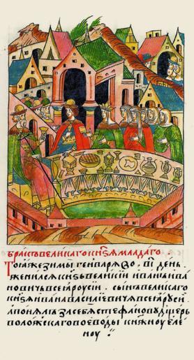 Keywords: Facial Chronicle - b.16, p. 528 - Ivan the Young and Elena Voloshanka's wedding.gif Б ак великого князя ладого В ту же зиму янва я в 12 день женился вели- кий князь всея Руси Иван Иванович сын великого князя всея Руси Ивана Василье- вича и взял за себя дочь воеводы Валаш- ского Стефана княжну Елену http //www runivers ru/bookreader/book481263/ page/5/mode/1up 16th-century anonymous PD-Old Facial Chronicle v 8 - Shumilovskiy tom 1425; 1478-1533 Files uploaded by Shakko from various sources 1483 in Russia Elena Voloshanka of Moldavia Ivan Ivanovich Molodoy in miniature Weddings in medieval manuscripts Russia |