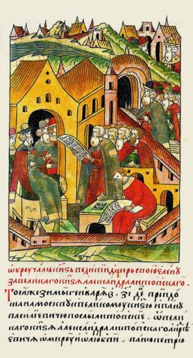 | Keywords: Facial Chronicle - b.17, p. 161 - Elena Ivanovna's engagement.gif Об учал великий князь свою дочь Елену за великого князя Ли- товского Александ а В ту же зиму янва я в 17 день п ишли в о- скву к великому князю Ивану Васильевичу литовские послы от великого князя Ли- товского Александ а Анд еевича с ми ом и любовью пан Пет http //sterligoff ru/books/Rus_Kniga 2018 pdf 16th-century anonymous PD-Old Facial Chronicle v 8 - Shumilovskiy tom 1425; 1478-1533 Files uploaded by Shakko from various sources Helen of Moscow 1513 in Russia |