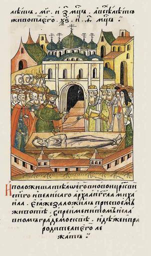 MAKE A MEME View Large Image Facial Chronicle - b.18, p. 062 - Ivan III's burials.jpg И положили его тело в но- вой це кви святого и великого а хангела  ихаила кото ую князь за- ложил еще ...