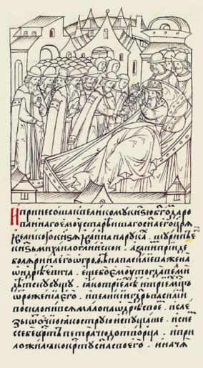MAKE A MEME View Large Image Facial Chronicle - b.19, p. 318 - Vasily III giving farewell to son Ivan IV.gif И п инес к ве- ликому князю Богом да о- ванного ему ста шего сына его ца я и вели- кого ...