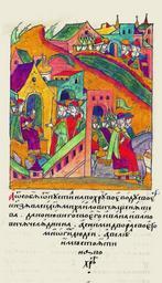 | Keywords: Facial Chronicle - b.20, p. 099.gif иниатю а Лицевого летописного свода XVI в а от себя отпустил на Пах у воеводу своего князя Василия ихай- ловича Щенятева да конюшего своего Ива- на Ивановича Челяд- нина а с ними дво а своего многих людей а велел им стоять на Пах е» http //www runivers ru/bookreader/book482205/ page/43/mode/1up century 16 anonimus Facial Chronicle v 9 - Sinodalniy tom 1533-1542; 1553-1567 1541 in Russia PD-Art | ||||