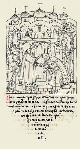 Keywords: Facial Chronicle - b.20, p. 277 - Coronation Ivan IV.jpg ru Лицевой летописный свод И потом под- ходит к ми- т ополиту благословиться; и благословившись от- ходит на свое место а мит ополит стоял на кли осе у своего места со священным собо ом во всем своем святительском облачении century 16 http //www runivers ru/bookreader/book481478/ page/282/mode/1up RusPainter other versions PD-old-70-1923 Facial Chronicle v 10 - Tsarstvennaya kniga 1533-1553 Ivan IV's coronation Files uploaded by Shakko from various sources Uploaded with UploadWizard |