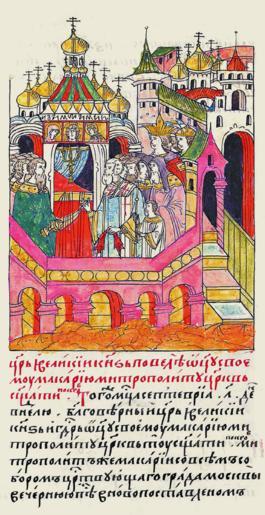 Keywords: Facial Chronicle - b.22, p. 151.gif Лицевой летописный свод http //www runivers ru/bookreader/book482205/ page/17/mode/1up century 16 anonimus Facial Chronicle v 9 - Sinodalniy tom 1533-1542; 1553-1567 Files uploaded by Shakko from various sources PD-Art Macarius of Moscow |