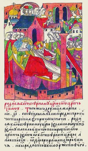 Keywords: Facial Chronicle - b.22, p. 43 - Birth of Ivan Ivanovich.gif иниатю а Лицевого летописного свода XVI в http //www runivers ru/bookreader/book482205/ page/43/mode/1up century 16 anonimus Anastasia Romanovna Facial Chronicle v 9 - Sinodalniy tom 1533-1542; 1553-1567 Facial Chronicle - b 22 p 043 1554 in Russia Files uploaded by Shakko from various sources Medieval miniatures of casual life Ivan Ivanovich PD-Art