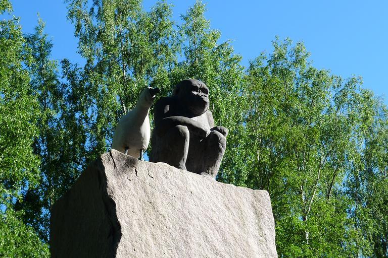 Keywords: Fågeltempel.JPG en The sculpture Fågeltempel Örebro Sweden sv Skulpturen Fågeltempel vid Lilla Å-promenaden i Örebro own Peterappelros 2009-05-30 Parks in Örebro Lilla Åpromenaden Sculpture walks Statues of gorillas Statues of birds