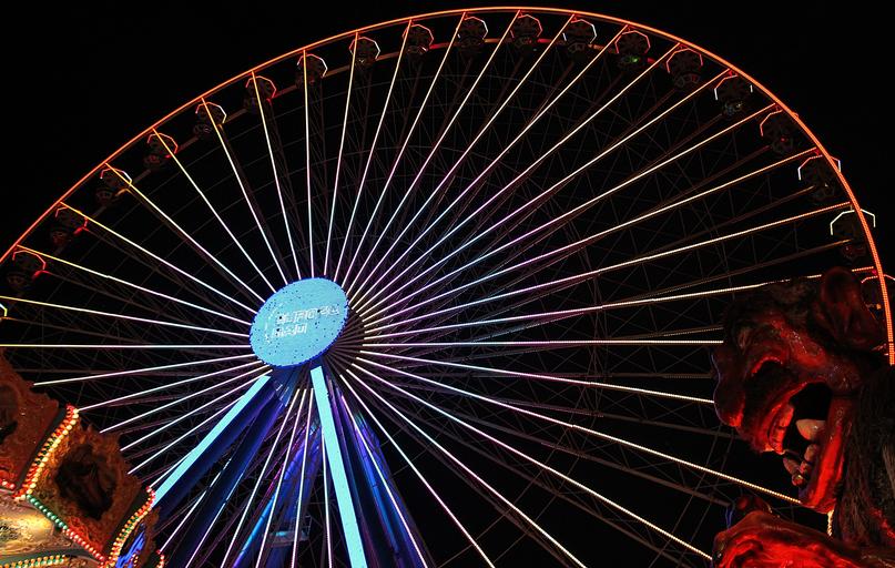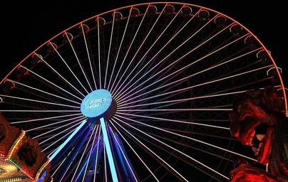 | Keywords: fair hustle and bustle year market folk festival ferris wheel carnies fairground pleasure fun leisure evening entertainment abendstimmung night perspective dark colorful color carousel ride romantic joy gondolas romance light attraction lights lighting darkness |