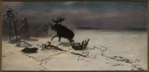 | Keywords: Fałat Walka łosia z wilkami.jpg oil canvas cm 90 187 Institution National Museum Warsaw accession number object history credit line http //cyfrowe mnw art pl/dmuseion/docmetadata id 15386 show_nav true cyfrowe mnw art pl PD-old-70-1923 Uploaded with UploadWizard Paintings by Julian Fałat in the National Museum in Warsaw |